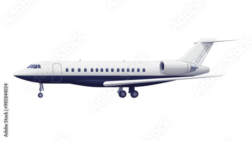 Modern Passenger Airplane Isolated on White Background.** A detailed side view of a commercial passenger airplane in a clean white design, isolated on a white background.