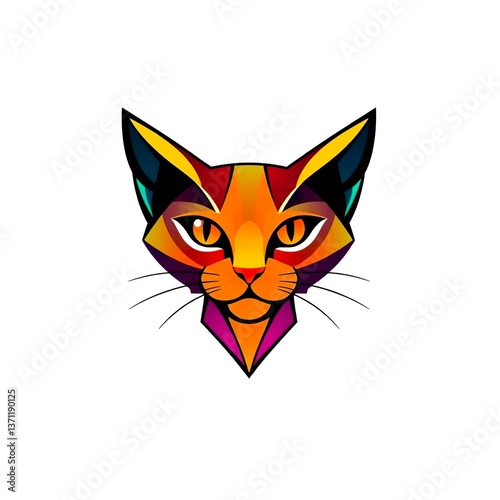 Modern Polygonal Feline Icon. A striking, multi-colored cat head rendered in a geometric style, showcasing sharp lines and vivid hues, perfect for branding or creative projects