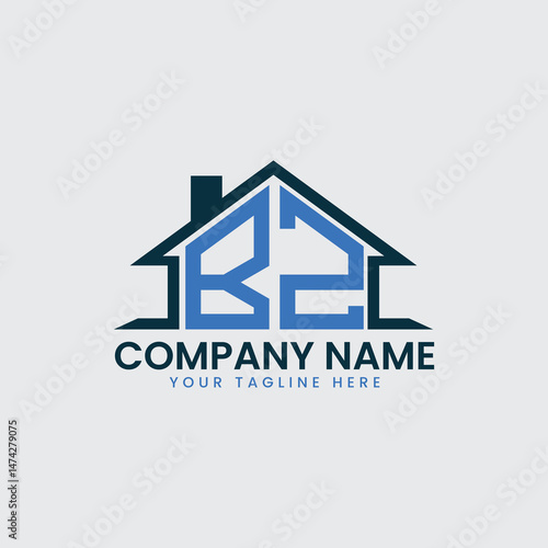 Modern Real Estate Logo with House Roof Icon and Custom Letter Monograms