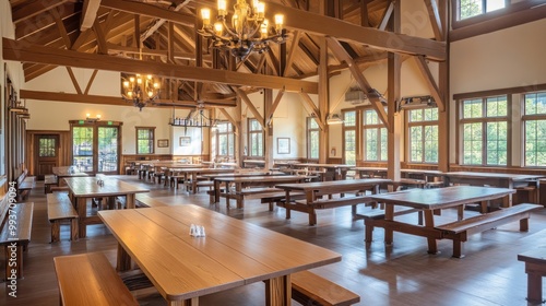 Modern restaurant decoration with wood, warm, comfortable and feels like home for family dining. Ai generated image