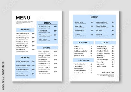 Modern restaurant menu template. Food and drink menu layout design. Vector illustration