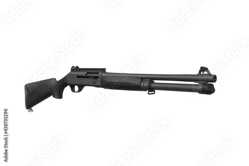 Modern semi-automatic shotgun. Weapons for sports and hunting. Black weapon isolate on white back.