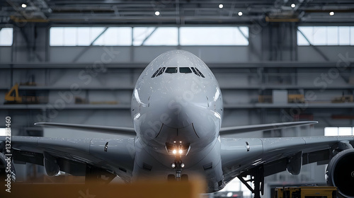 Modern Silver Airplane Undergoing Maintenance Inside A Large Hangar With Metal Infrastructure