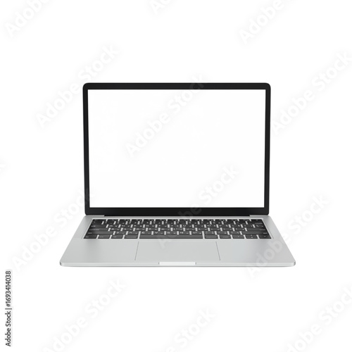 Modern silver laptop computer open with screen displayed isolated on black for design projects transparent background