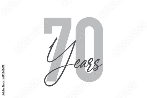 Modern, simple, minimal typographic design of a saying "70 Years" in tones of grey color. Cool, urban, trendy and playful graphic vector art with handwritten typography.