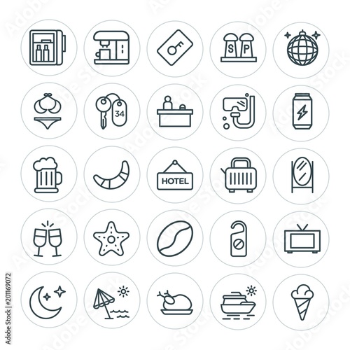Modern Simple Set of food, hotel, drinks, travel Vector outline Icons. ..Contains such Icons as pepper, hotel, door, roasted, television and more on white background. Fully Editable. Pixel Perfect