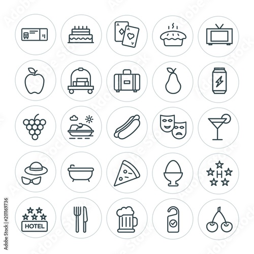 Modern Simple Set of food, hotel, drinks, travel Vector outline Icons. ..Contains such Icons as wave, background, food, design, alcohol and more on white background. Fully Editable. Pixel Perfect