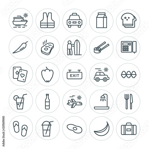 Modern Simple Set of food, hotel, drinks, travel Vector outline Icons. ..Contains such Icons as fashion, water, baggage, travel, cold and more on white background. Fully Editable. Pixel Perfect