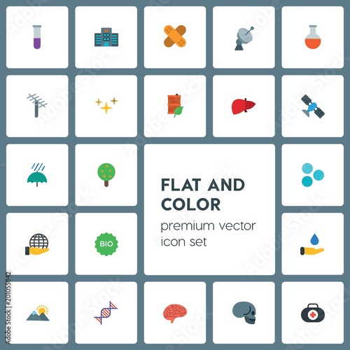 Modern Simple Set of health, science, nature Vector flat Icons. ..Contains such Icons as nature, kit, concept, save, health, building and more on grey background. Fully Editable. Pixel Perfect