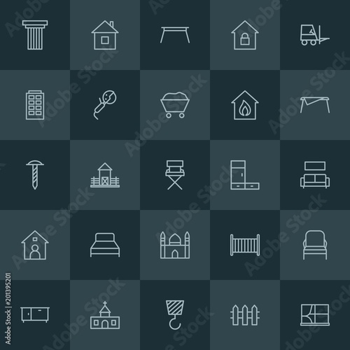 Modern Simple Set of industry, buildings, furniture Vector outline Icons. ..Contains such Icons as house, child, illustration, building and more on dark background. Fully Editable. Pixel Perfect.