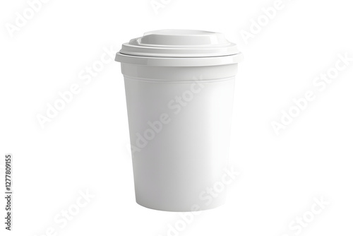 Modern small sleek white plastic trash bin minimalist design isolated on cut out PNG or transparent background. Garbage container with lid. Concept of cleaning waste separation, and public hygiene.