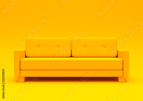 Modern sofa, couch isolated on a pastel yellow living room. Empty interior background . Minimal creative style concept. 3D rendering illustration front view