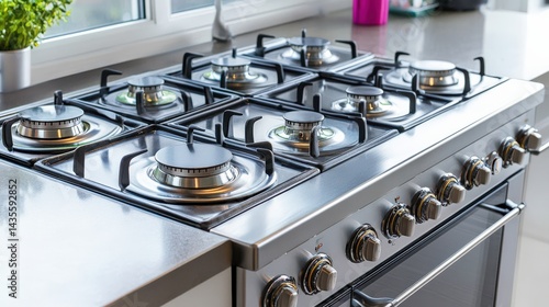 Modern stainless steel gas stove with multiple burners and sleek design for contemporary kitchens
