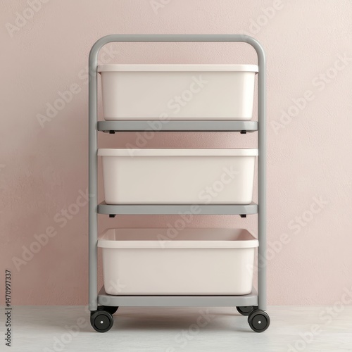 Modern Storage Cart with Pink Bins on Gray Frame for Organized Living