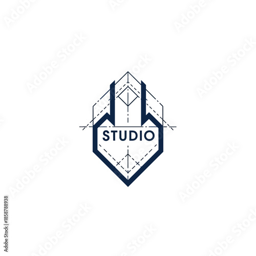 Modern Studio Logo Emblem with Geometric Shapes and Lines