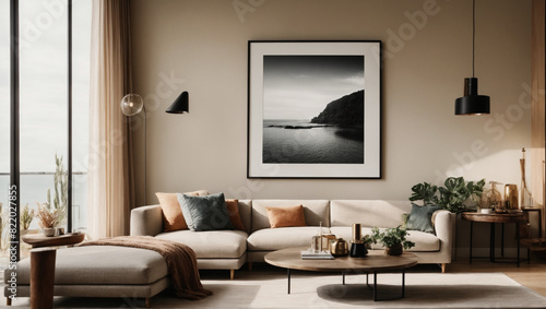 Modern style relaxation room with beautiful pictures on the wall.AI generated