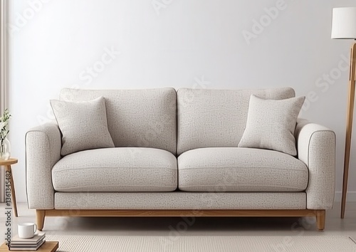 Modern Stylish Sofa with Cushions in Bright Living Room Interior