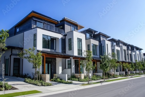 Modern Townhouse with Solar Panels. AI generated illustration.
