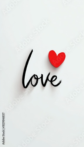 Modern Vector Art of Handwritten "Love" with Minimalist Red Heart
