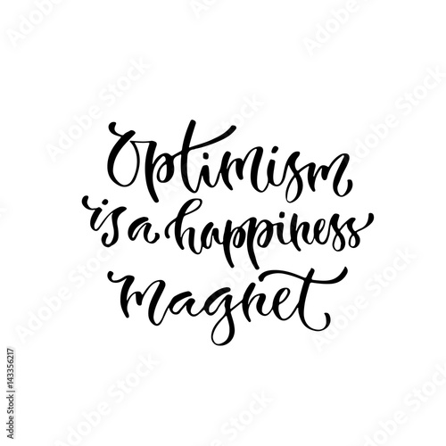 Modern vector lettering. Motivational hand lettered quote for wall poster. Printable calligraphy phrase. T-shirt print design. Optimism is a happiness magnet