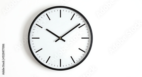 Modern wall clock with minimalistic black and white design, isolated on white background — clean and simple home decor item with no branding