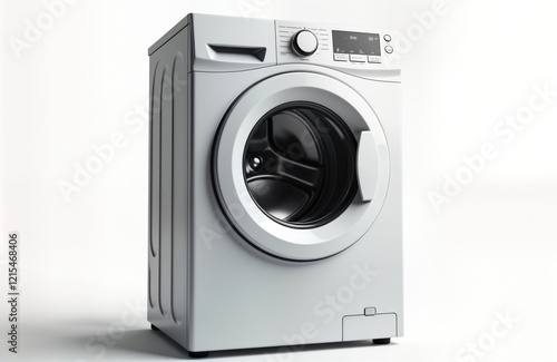 Modern washing machine isolated on white background. Stylish appliance for home laundry. Contemporary design. Useful household item. Clean, modern. Efficient tech. Perfect for house. Great laundry