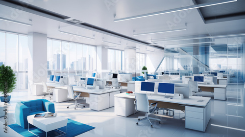 Modern white and blue open space office interior