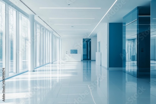 Modern White and Blue Open Space Office Interior with Sleek, Minimalist Design