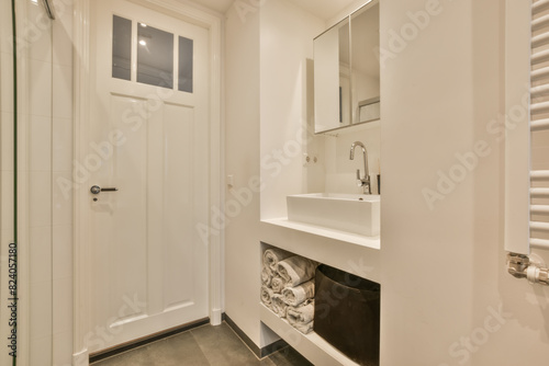 Modern white bathroom interior with stylish fixtures