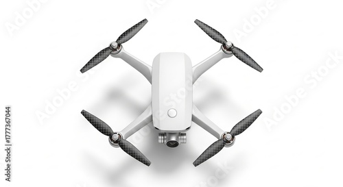 Modern white drone with four propellers on a white background