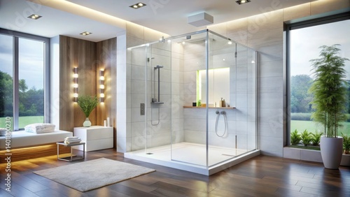 Modern White Glass Shower Enclosure with LED Lighting - Luxury Bathroom Design Ideas