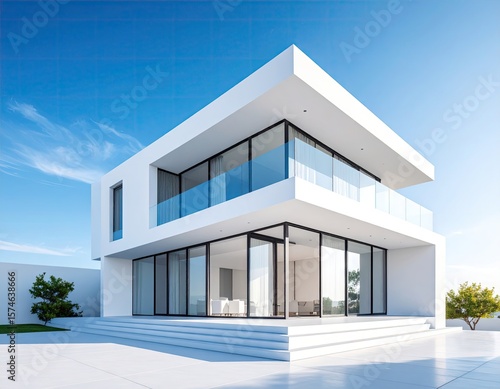 Modern white house with glass balconies