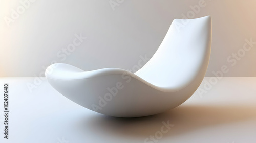Modern white rocking chair in a minimalist setting, casting a subtle shadow on the floor.