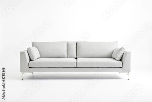 Modern White Sofa with Chrome Legs Isolated on White Background