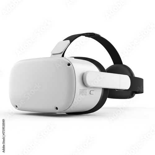 Modern white virtual reality headset with black strap on white background