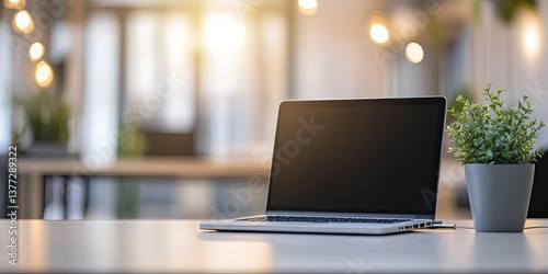 Modern Workspace with Laptop and Plant (1)