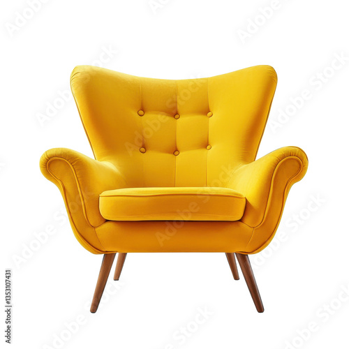 Modern yellow armchair designed for stylish living spaces with comfortable seating, Modern yellow armchair isolated on Transparent background