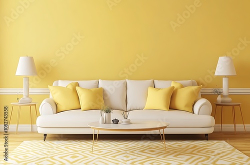 Modern Yellow Living Room Interior with Cozy Sofa and Elegant Decor – Minimalist Design