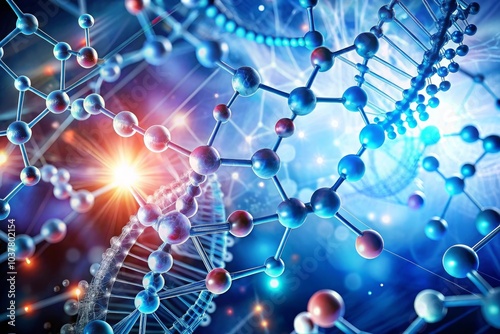 Molecular DNA structure abstract background. Molecule model, chemical formula. Medical, science and technology concept