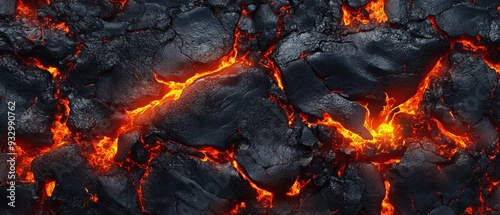 Molten lava volcanic rock texture background with magma and fire