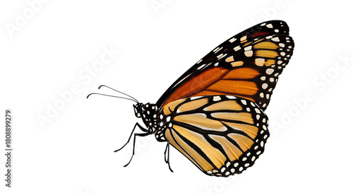 Monarch Butterfly Detailed Close Up Side View isolated on transparent background, png