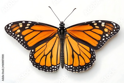 Monarch butterfly isolated on white background with open wings