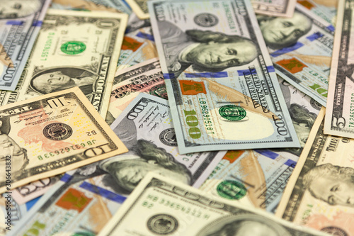 Money background. Big pile of dollars. Background of paper banknotes.