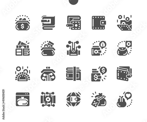 Money wallet. Online wallet. Coin, purse, money, finance, cash, business and payment. Discount wallet. Vector Solid Icons. Simple Pictogram
