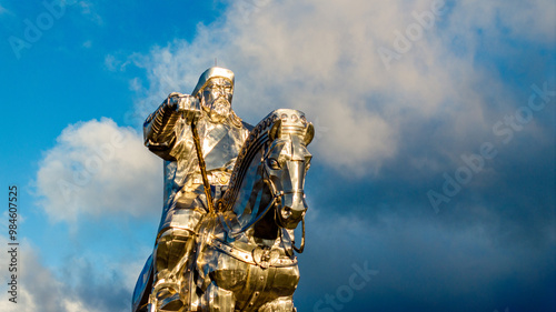 Mongolian ruler horse statue with dramatic sky detail