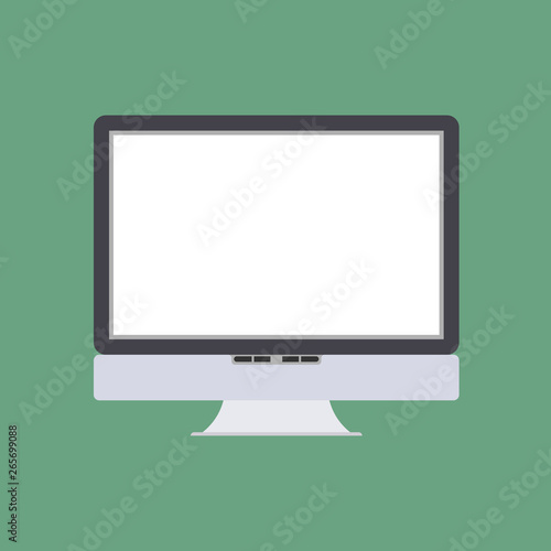 Monitor screen front view display vector icon. Above computer electronic isolated white. Flat PC device equipment office