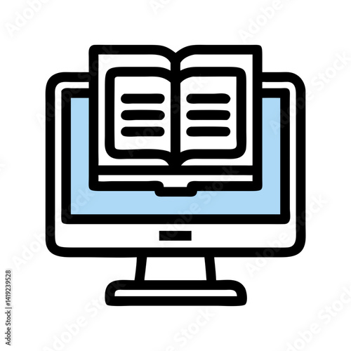 Monitor with Book Icon Representing Online Design and Digital Learning