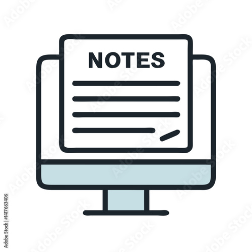 Monitor with Notes Icon Representing Online Education and Digital Learning Resources