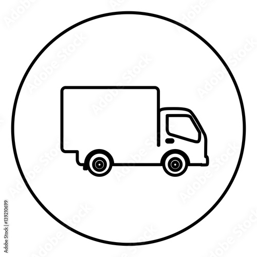 monochrome contour circular frame with truck icon vector illustration