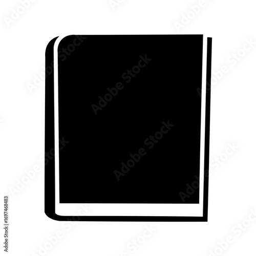 Monochrome illustration of a closed book with a simple solid design